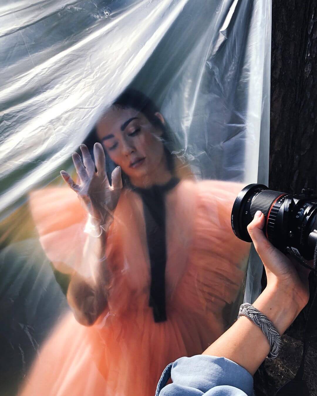 Saradnja između Saše Popove i fotografkinje Nastje Gie jedna je od onih retkih vizuelnih susreta u kojima obe strane umetnički dobijaju. Njihova prva zajednička foto-sesija bavi se ekološkim temama, koristeći snažne vizuelne motive plastike, šume i transparentnosti — metafore ljudske krhkosti i naše odgovornosti prema prirodi. Fotografije podsećaju na umetničke plakate koji promovišu ekološku svest, predstavljene ne kroz agresiju, već kroz estetski minimalizam i tihu emociju.