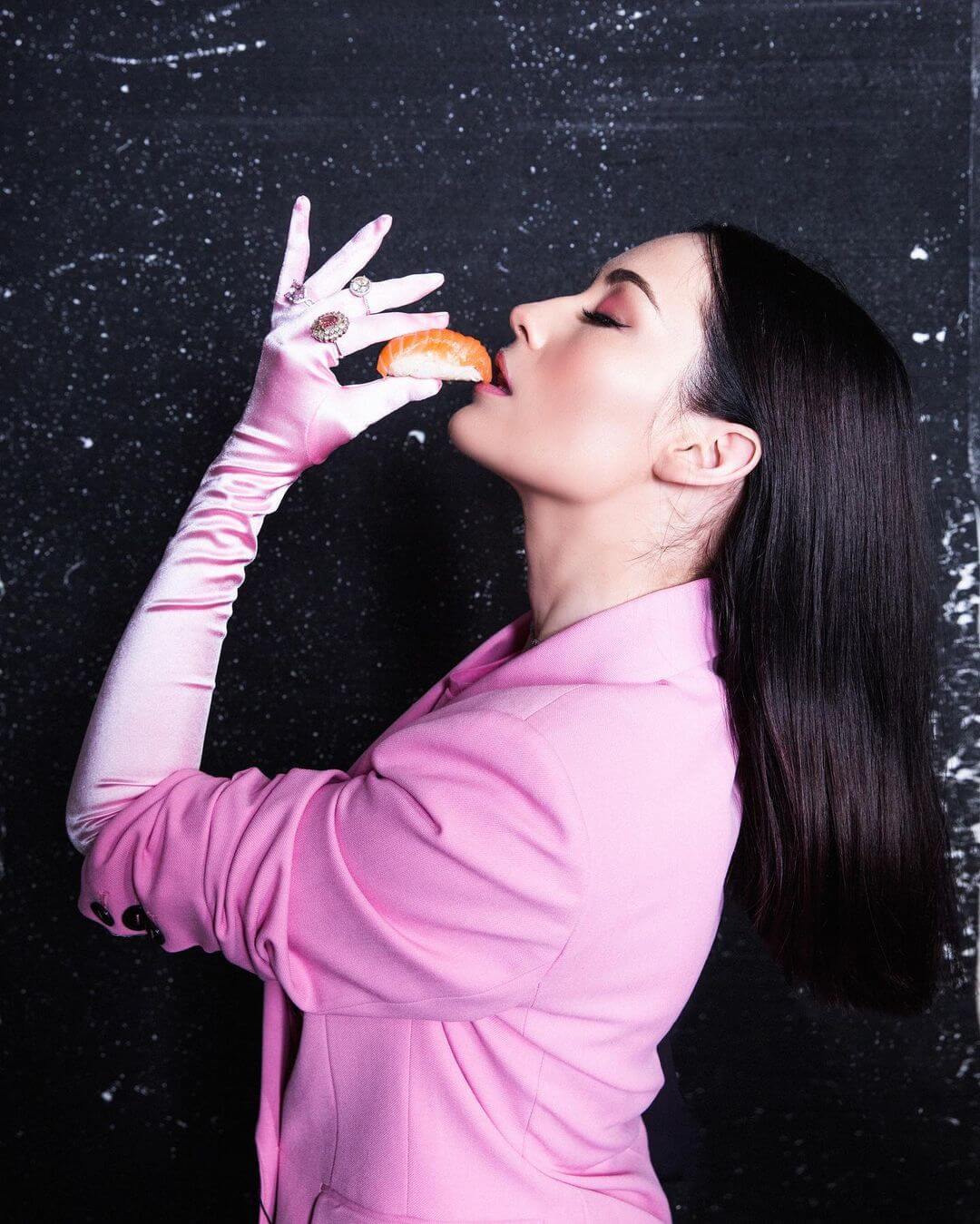 Druga sesija, nastala kao podrška pesmi Sushi, donosi smelu kombinaciju pop estetike i urbane mode. Uz jarke boje, neon osvetljenje i vizuelne paradokse, ove fotografije deluju kao modna revolucija inspirisana savremenom japanskom kulturom.